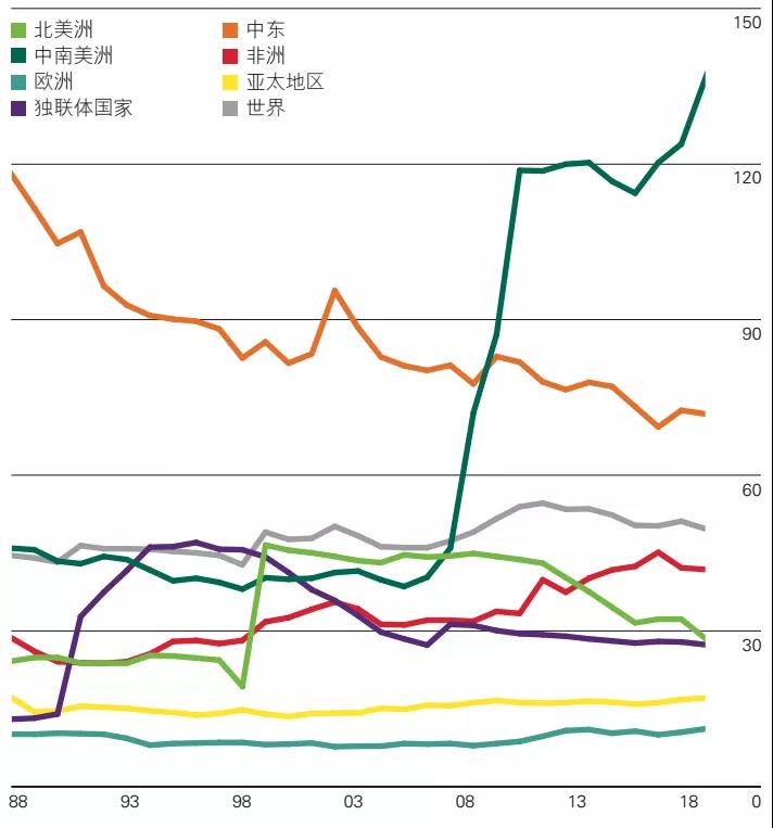 具体而言,除了中东地区,全球石油的可开采年限随着技术的提升,基本保持平稳甚至呈现逐步增长的势态。