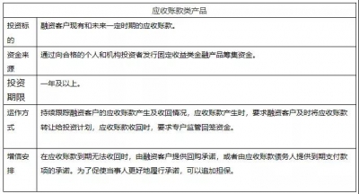 其次,根据投行业务特点,投行的投资标的主要分为标准债权和非标债权,标准债权包括股票、债券等能够在公开市场流通交易的金融资产,非标债权包括信贷资产、各类受益权等被标准债权排除在外的债权。除信贷资产外,其他资产都要求是能够产生现金流的财产或财产权。在这些投资标的中,根据商业银行理财产品不能直接投资信贷资产的硬性要求,以及供应链金融业务自偿性的内在要求,所以,把合格的投资目标锁定在能够独立产生现金流的财产或财产权。供应链金融业务中的应收账款、融资租赁租金、存货属于可以产生现金流的财产或财产权,是符合投资标的的。
