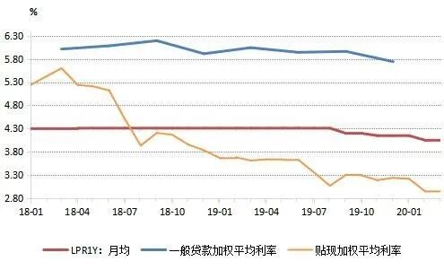 根据上海票据交易所数据统计,2020年一季度,票据贴现加权平均利率为2.95%,较上年同期和上年末分别下降66和29个基点,较同期LPR低110个基点。其中,中型企业和小微企业贴现加权平均利率分别为2.88%和3.01%,同比分别下降72和65个基点,比一年期LPR的同期报价4.05%分别低117和104个基点。