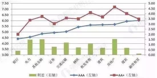 3 、从资产负债端来看。从AAA企业的债券发行利率来看,融资租赁企业发行利率处于行业较高水平,2018年1~10月加权平均利率为6%。而从AA+企业的债券发行利率来看,融资租赁企业发行利率处于行业中等水平,为6.13%。