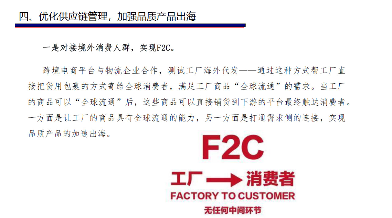 1.市场需求精耕细分,助力消费结构升级;2.跨境电商平台优化升级,服务能力增强;3.优化供应链管理,加速品质产品出海。