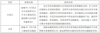 同年12月,石家庄人民政府办公厅发布关于《石家庄市人民政府办公厅关于推进供应链创新与应用的实施意见》,鼓励符合条件的商业银行、供应链核心企业创新金融服务模式,开发具有标准化和个性化的供应链融资产品,提供供应链融资、贸易融资、仓单质押等金融服务,为供应链上下游中小微企业提供高效便捷的融资渠道。