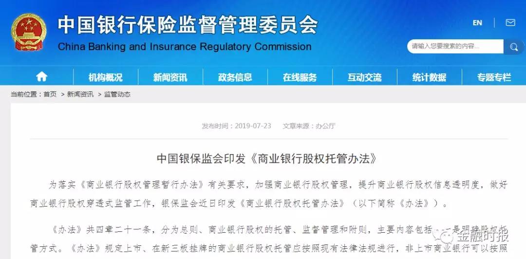 充分发挥股权托管作用 银保监会明确商业银行股权确权时间表