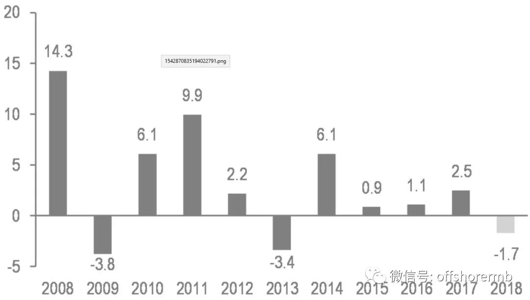 而美元指数 (96.4978, -0.0052, -0.01%)明年 2季度前依然将保持强势。市场和外汇将继续自不同方面作出反应,其中人民币仍是反映贸易风险情绪的主要短期晴雨表。报告并预测今年年底的人民币汇率为 6.94元,明年四个季度的预测值则分别为 7.09、 7.15、 7.19、 7.20元。
