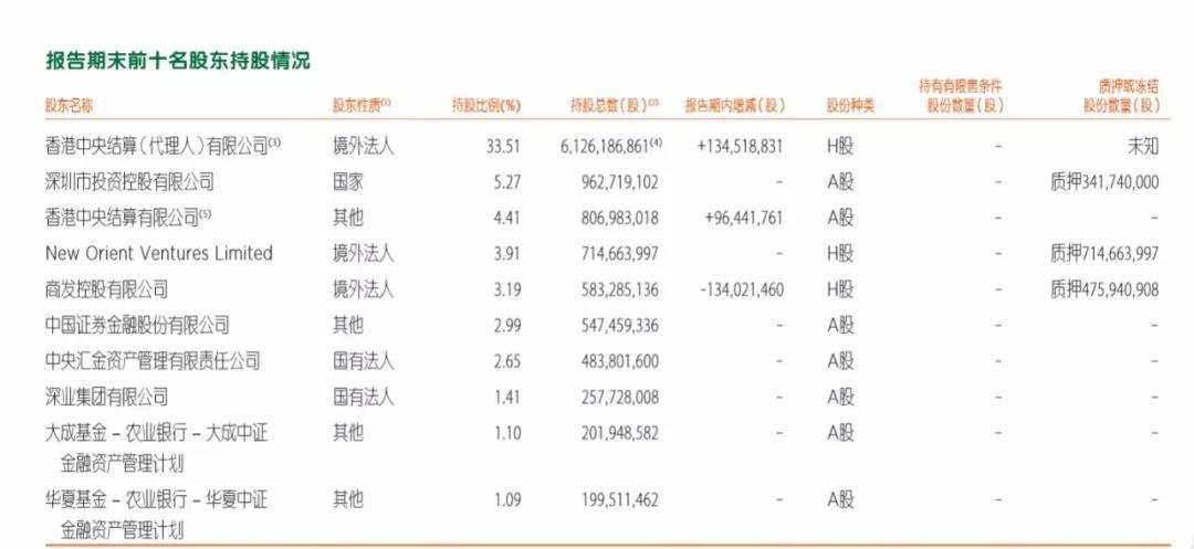 平安2019年半年报前十名股东