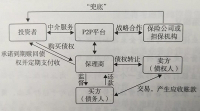 应收账款转让模式,是指保理公司(转让人)将基于保理业务获得的应收账款作为交易标的,转让给 P2P 平台上注册的投资人(受让人),附随于应收账款的担保措施(简称企业担保,由企业或第三方提供)一并转让给投资人,同时保理公司向投资人提供逾期回购安排的模式。