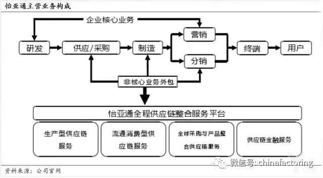 在一站式供应链管理服务的产业基础上 ( “采购”与“分销” ) ,怡亚通开展金融业务,将银行借贷资金通过供应链管理服务方式投放给客户,并从中赚取“息差”,同时,针对外汇结算业务开展金融衍生交易对冲外汇风险。
