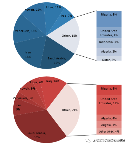 1971年和2019年欧佩克石油产量及生产结构