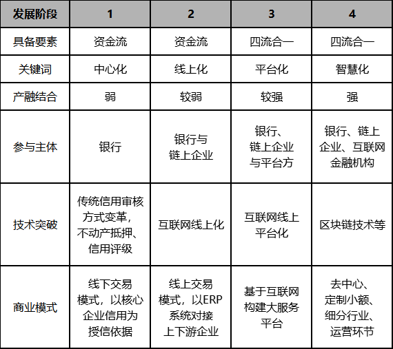 表2. 供应链金融各阶段发展状况对比