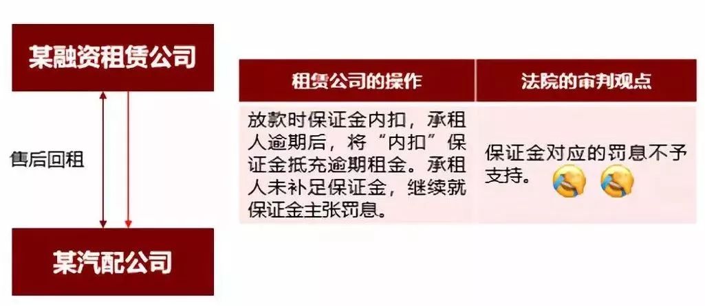 除“对打”的操作方式外,目前行业内也有部分出租人采取以“预付租金”代替“保证金”的方式,降低“抵扣/内扣”方式下 保证金被第三方债权人申请冻结、扣划的风险。但如果《最高人民法院关于进一步加强金融审判工作的若干意见》的内容来看,“预付租金”代替“保证金”,依旧无法解决诉讼阶段实际计息本金被法院调整的问题。另外,我们认为,从预付租金的字面意思分析,预付租金属于预付款性质,一般仅能用于抵扣租金,对于能否抵扣租赁物处置费用、律师费、诉讼费等其他应付费用也存在一定的不确定因素。