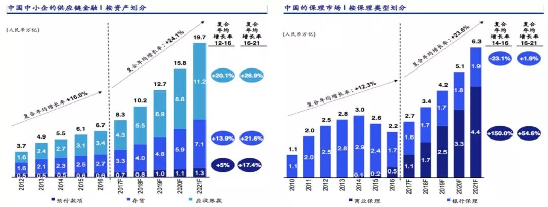 在数字经济推动下,保理行业的范围在拓展。举一个例子,传统的保理不做消费端的保理,我们看FCI早期的一些定义都是这么写的,但是现在我们看,保理业务已经突破了B2C的禁区,去年发了FCI发布的文章,消费领域(个人作为债务人)保理业务增长迅猛,德国发展尤为抢眼。根据《世界保理年鉴2018》(World Factoring Yearbook 2018),2017年德国B2C保理业务规模几乎翻了一番,增长了92.2%,达到122亿欧元(2016年为63亿欧元)。为什么保理会介入到消费领域?这有两个原因:1.B2C销售流程日益数字化,交易信息透明度大为提高;2.相关行业(如医疗服务和商品零售行业)信用销售比例日益提高,企业拥有大量私人债务人,保理成为一种可行的融资形式。