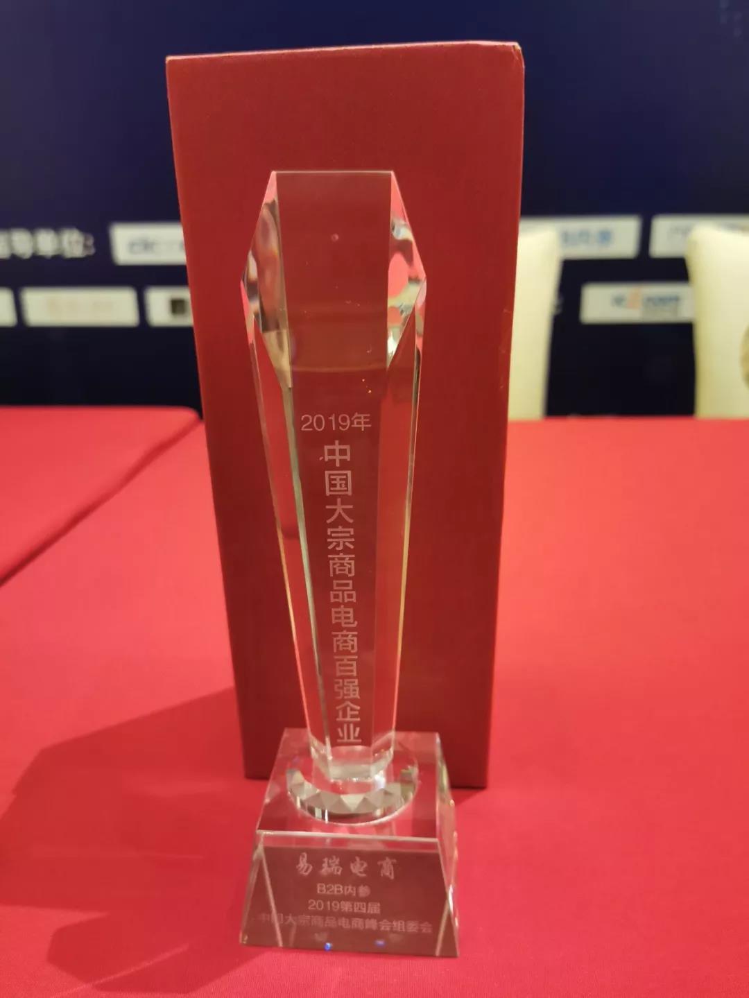 易瑞国际电子商务有限公司荣获“2019中国大宗商品电商百强企业”