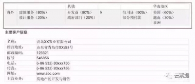采购和销售信息这两大模块体现的是目标公司的上下游信息,涵盖了目标公司的付款方式、上下游的企业类型、数量、区域等内容。通过信用视界的报告分析师跟上下游企业进行沟通,还可以从侧面了解目标企业的付款情况、交货情况、产品质量等,进而获取目标企业在部分供应商中的信用情况。
