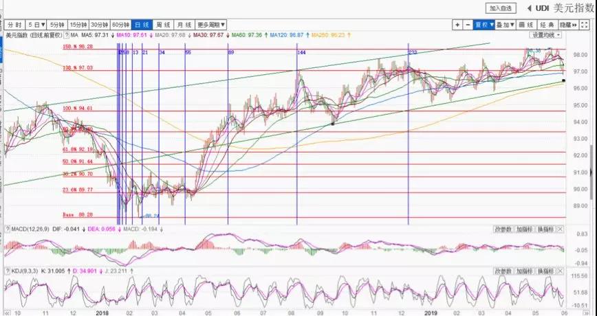 (2018年1月1日至2019年6月6日美元指数走势图)