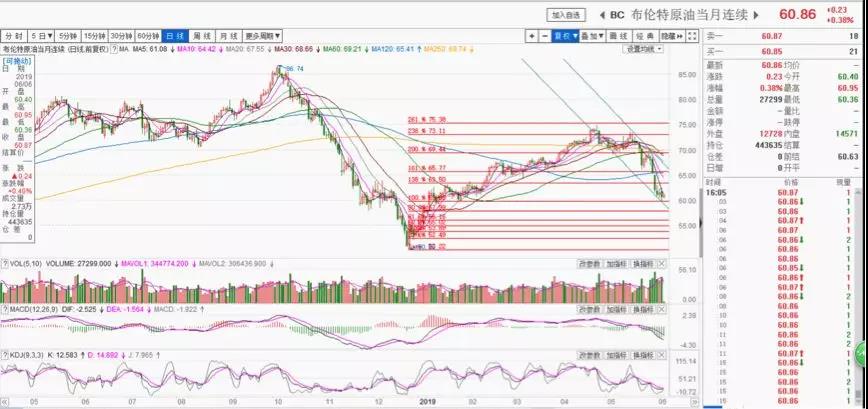 (2018年12月24日至2019年6月6日布伦特原油当月连续交易分析图)