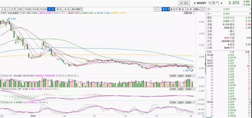 (2018年12月1日至2019年6月6日纽约商品交易所NGOOY天然气交易行情走势)